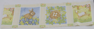 Some flower buttons, yellow ribbon, green ribbon with hens on, 2 lovely fat quarters, 2 curly wurlys and what you don't see here is the big bag of Maltesers - they disappeared pretty quickly ;-)